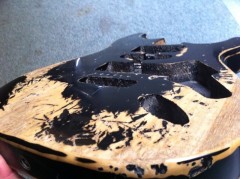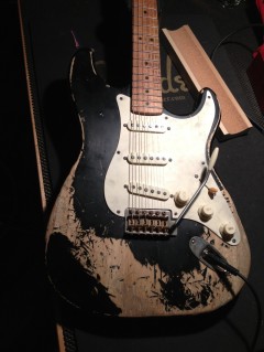 After many methods and hours to get this to look "cool and heavy reliced black strat" this is my creation. I dragged the body behind my Jeep, sanded, buffed it, acid washed the hardware and